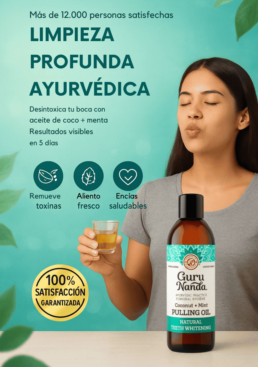 Tu boca es la puerta a tu salud. El pulling oil de GuruNanda combina coco + menta en una fórmula milenaria que desintoxica, refresca y protege naturalmente. Un hábito diario que transforma tu sonrisa... desde la raíz.